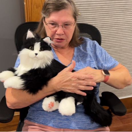 To illustrate Percy’s impact, imagine a senior resident in an assisted living facility who, due to mobility limitations, spends most of their day in a quiet room. Before Percy, their day-to-day life may have felt monotonous, lacking the social or emotional engagement they once enjoyed. However, with Percy, they have a small, lifelike companion who responds to their presence and touch. When they reach out to stroke Percy’s back, they’re greeted with a soft vibration—a reassuring purr that brings a smile to their face. The resident might even start speaking to Percy as if he were a live cat, enjoying the chance to have a “conversation” with a responsive companion.