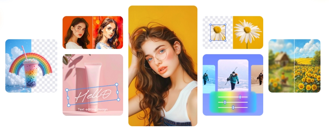 Complete AI Photo Editing Suite – AI image generator, watermark remover, AI object remover, photo enhancer, photo restoration, blur background, AI baby generator, AI headshot generator, AI face swap, AI filter, passport photo maker, background remover, AI replacer, AI recolor, AI background generator, AI image extender, photo retouching, face cutout, etc.