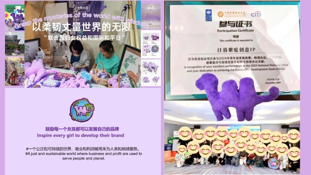 The "Higure Purple Camel Creative IP" incubated by Jaeger Legacy Innovation (Beijing) Technology Co., Ltd is a pioneer of the trend of Sustainable Development. It has not only attracted the attention of consumers but also plays an important role in promoting sustainable development. By collaborating with female designers, entrepreneurs, gig economy workers, and retired women, the "Higure Purple Camel Creative IP" has developed diverse product lines such as art carpets and plush dolls. While achieving commercial value, it actively supports public welfare projects and the creation of artists, promoting biodiversity protection, women's development, and the co - beneficial cooperation of the cooperation network in a sustainable business way. Fortunately, the " Higure Purple Camel Creative IP" was selected as an excellent startup project in the 2024 National Dialogue China. The event aims to empower Chinese youth to practice the concept of sustainable development through innovation and entrepreneurship.