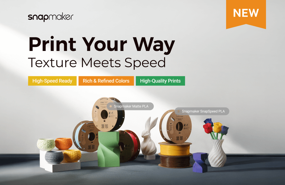 Shenzhen - Snapmaker, the world’s leading 3-in-1 3D printer manufacturer, has announced the launch of two new high-performance PLA filament lines: SnapSpeed PLA and Matte PLA. These filaments are designed to cater to the evolving needs of makers, designers, and professionals seeking speed, precision, and aesthetic excellence in their 3D printing projects.