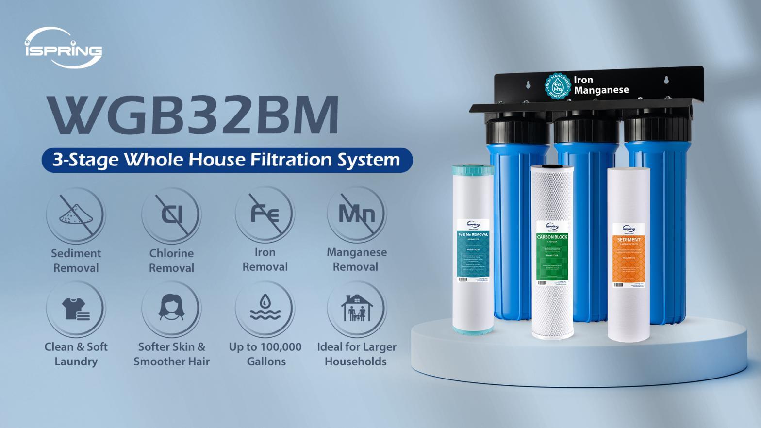WGB32BM: A whole house water filtration system that tackles iron, manganese, chlorine, sediment, and odors. A favorite for American households that demand comprehensive protection.