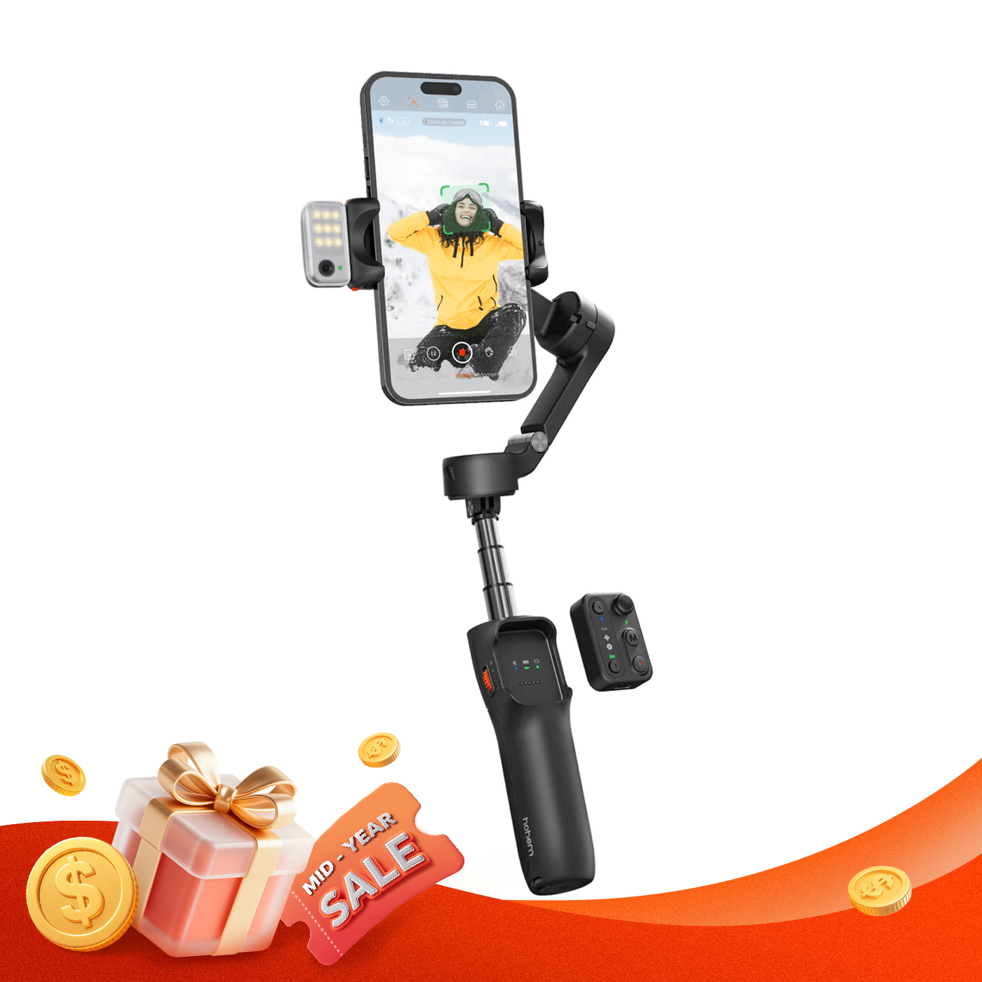 The iSteady X3 - It packs pro-level features into a pocket-sized design, including a detachable remote, magnetic fill light, built-in extension rod, and tripod. With 8th-gen stabilization, smart shooting modes, and 11-hour battery life, it’s built for smooth, flexible, all-day shooting on the go.