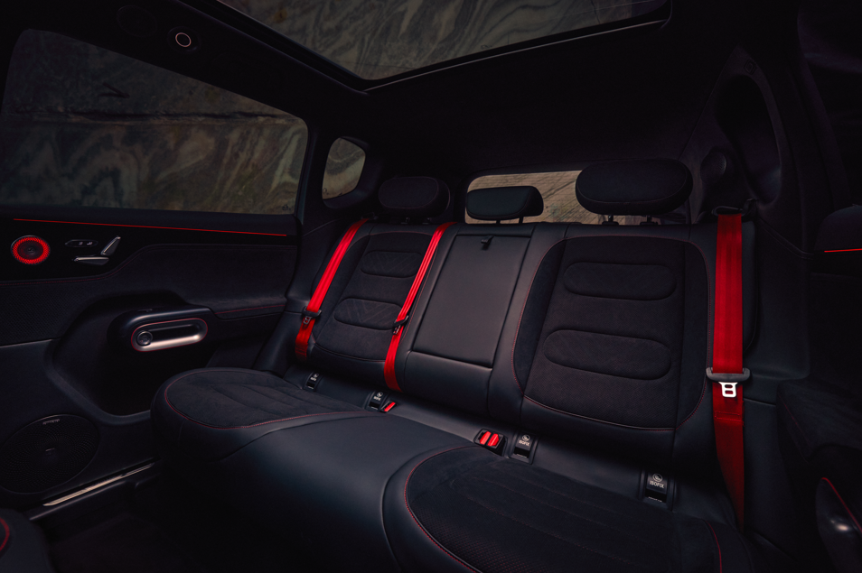 In the interior, high-quality microfiber seats with selected DINAMICA® accents, not only offer premium comfort, but also an exceedingly elegant ambience. The front seats with ventilation and heating functions, along with the heated rear seats, ensure a pleasant driving experience. The Alcantara steering wheel with illuminated BRABUS lettering fits comfortably in the hand, while the panoramic halo roof and microfiber roof lining round off the premium atmosphere. Sporty pedals, BRABUS interior badges and Ambient Light+ with 256 customizable colors set additional accents and emphasize the exclusivity of the vehicle.