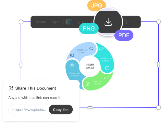 Export visuals instantly in PNG, PPT, or PDF formats. Embed directly into Word or PowerPoint documents for meeting materials preparation. Present key content in real-time during presentations. Complete the entire workflow from creation to application seamlessly without switching tools.