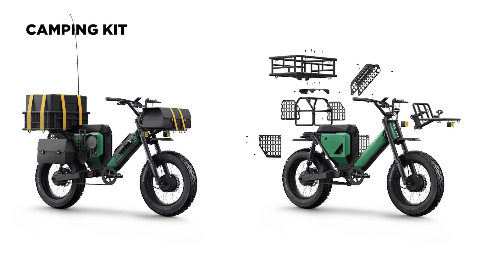 CAMPING KIT supports overnight travel with mounts for tents, tools, and gear. It allows riders to carry essentials without needing a separate trailer or vehicle.