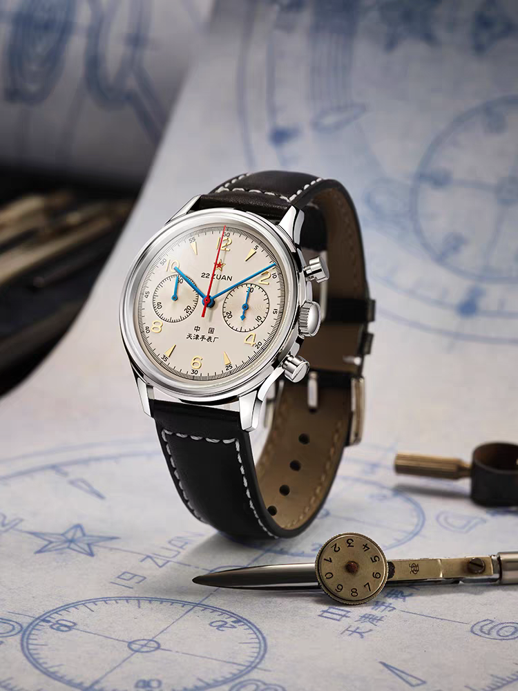 In 1961, the Chinese Ministry of Light Industry launched Project 304 in response to the country’s dependence on imported chronographs for Air Force operations. Tianjin Watch Factory—now Seagull Watch Group—was tasked with designing and manufacturing a fully domestic chronograph suitable for military use. Despite limited resources and outdated tools, a small team of engineers developed China’s first military-spec column wheel chronograph movement, culminating in the “Type 304” wristwatch.