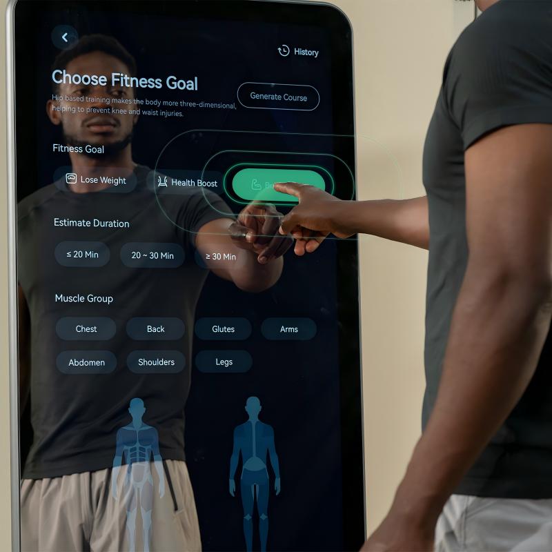Smart Mirror Functionality: When not in use, the K1 transforms into a sleek, full-length smart mirror, blending seamlessly into home decor. This dual functionality enhances the user experience, adding both practicality and style to any room.