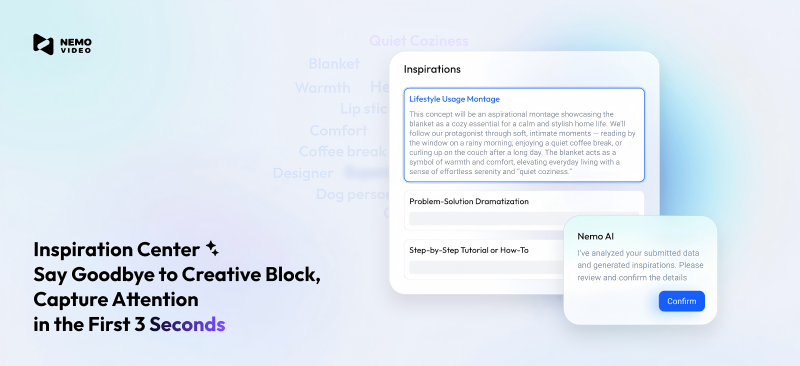 That’s where NemoVideo’s Inspiration Center comes in. It solves the toughest parts of content creation by helping you find the right Viral Video Hooks and Video Script Ideas instantly. No more creative stalls or guesswork — just clear, data-driven inspiration that keeps your ideas flowing and your audience engaged.