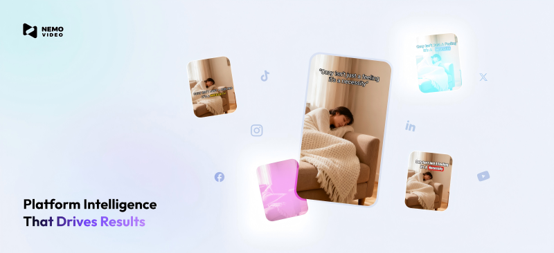 Nemo intelligently adapts videos for each platform’s unique format, pacing, and style—automatically. From TikTok to Reels to Shorts, content is adjusted to match current trends and technical specs without manual rework. For example, for one horizontal video, you can instantly generate 10+ platform-optimized versions.