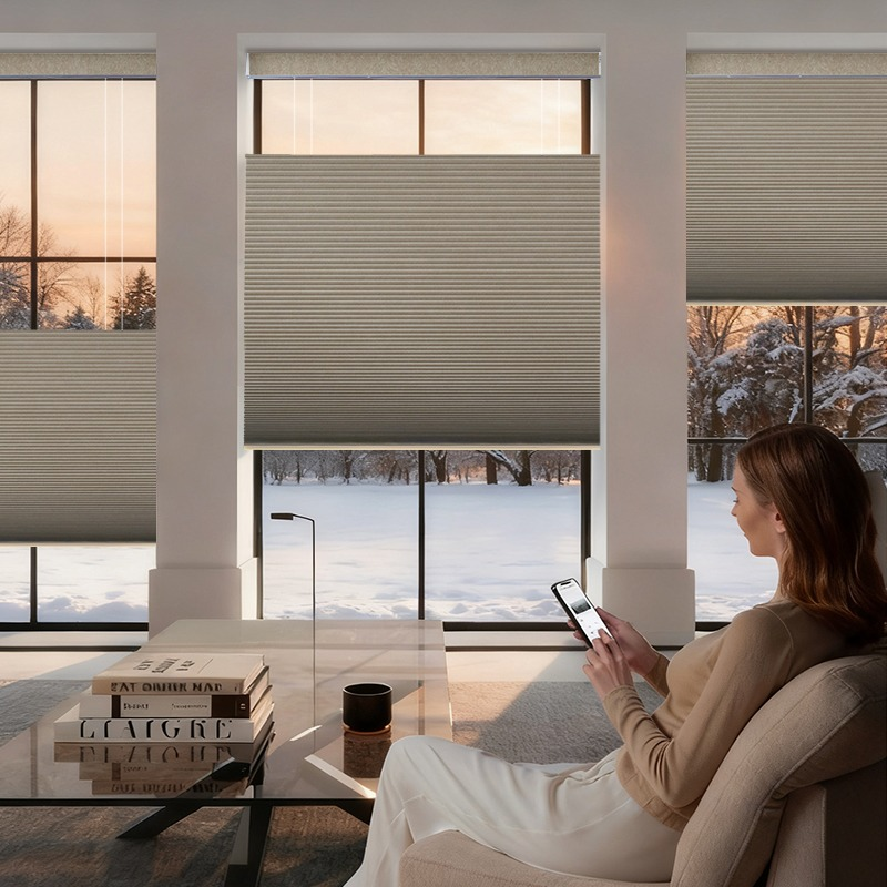 These shades also offer exceptional energy-saving benefits. The unique honeycomb structure traps air within the cells, creating an insulating barrier that helps regulate the temperature in your home—keeping it cooler in summer and warmer in winter. This design not only boosts comfort but also helps reduce heating and cooling costs, making it a great choice for eco-conscious homeowners looking to improve energy efficiency.