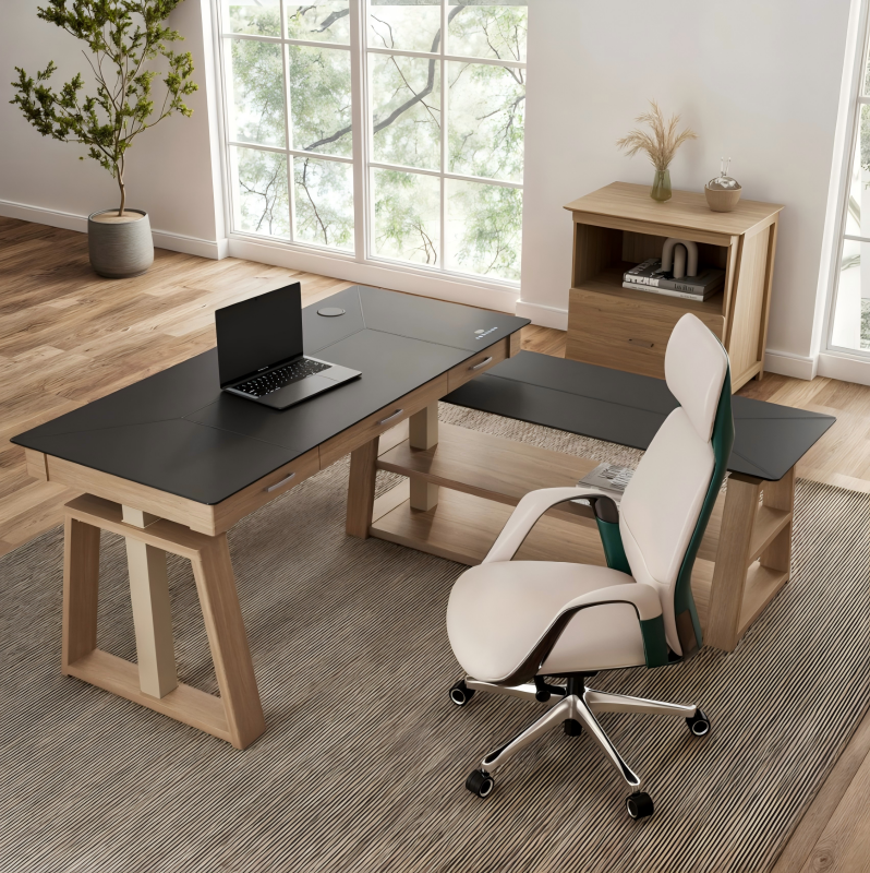 The resulting aesthetic is sleek, minimalist, and deeply integrated. Every desk in the series shuns the common industrial look for high-end, tactile finishes—from premium, scratch-resistant surfaces to rich, furniture-grade wood veneers. The goal is simple: to create a desk that complements a curated interior design, not clash with it.
